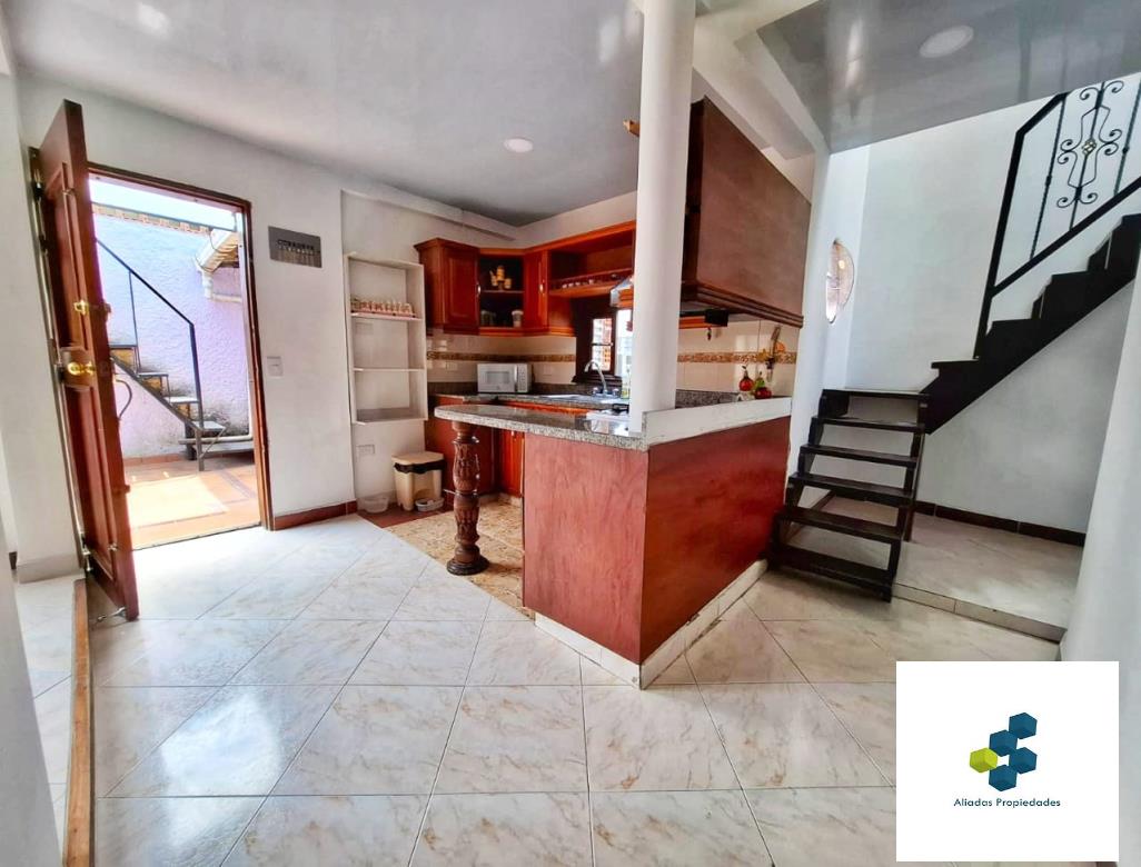 es un apartamento duplex de 120 mts. 3 habitaciones (con posibilidad de una cuarta) todas con closet empotrado, una habitación con zona de estudio y la alcoba principal tiene baño privado y vestier 2 baños cabinados en vidrio y cajoneria en madera cocina abierta e integral con barra americana sala-comedor con amplio ventanal sala de estar muy amplia con vista a la ciudad patio y zona de ropas cuarto util 633mil impuesto predial anual, cerca a la universidad de med ...
